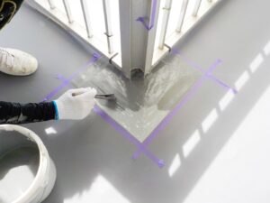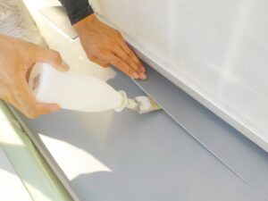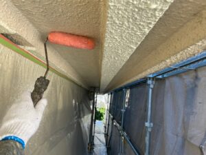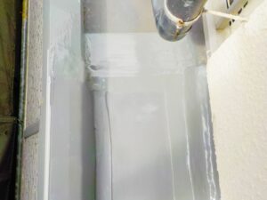 資材を保護し、上に塗る塗料の密着を良くするため、下塗り剤を塗ります。