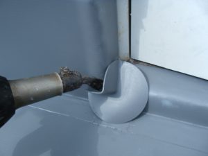 (左)【下塗り:プライマー塗布】(右)【ガラスクロス貼り(立上)】