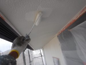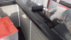 屋根材を保護し、上に塗る塗料の密着を良くするため、下塗り剤を塗ります。