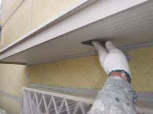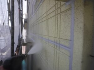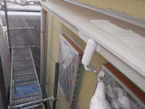 塗膜のひび割れや、壁のひび割れなどを目埋めするために中塗り剤を塗ります。