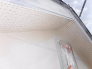 外壁材を保護し、上に塗る塗料の密着を良くするため、下塗り剤を塗ります。