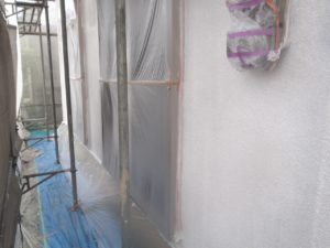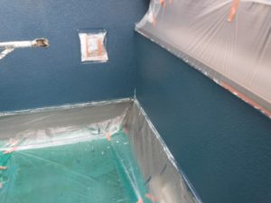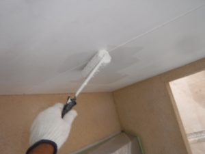 塗膜のひび割れや、壁のひび割れなどを目埋めするために中塗り剤を塗ります。