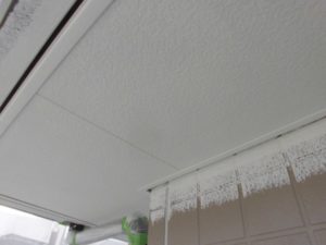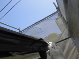 屋根材を保護し、上に塗る塗料の密着を良くするため、下塗り剤を塗ります。