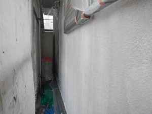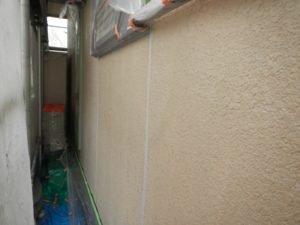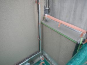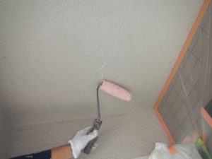 塗膜のひび割れや、壁のひび割れなどを目埋めするために中塗り剤を塗ります。