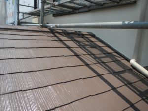 屋根材を自然環境から守るため、上塗り剤を塗り保護します。