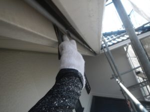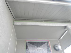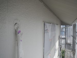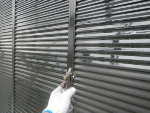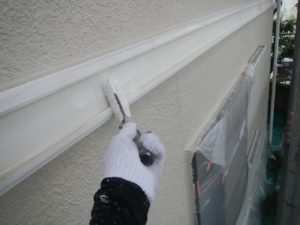 外壁材を保護し、上に塗る塗料の密着を良くするため、下塗り剤を塗ります。