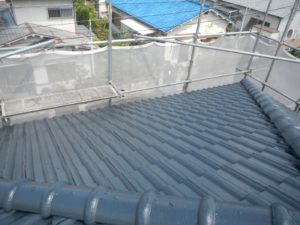 屋根材を自然環境から守るため、上塗り剤を塗り保護します。