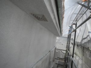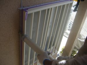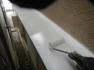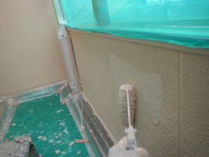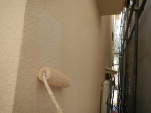塗膜のひび割れや、壁のひび割れなどを目埋めするために中塗り剤を塗ります。