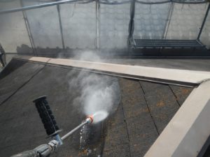 屋根材を保護し、上に塗る塗料の密着を良くするため、下塗り剤を塗ります。
