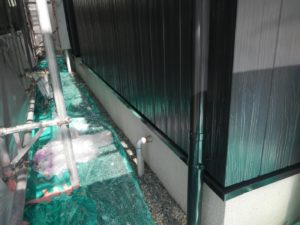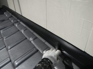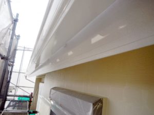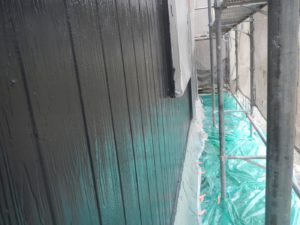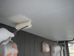 外壁材を保護し、上に塗る塗料の密着を良くするため、下塗り剤を塗ります。