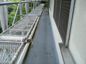 上に塗る塗料の密着を良くするため、旧塗膜・汚れを落とし細かな傷を付けます。