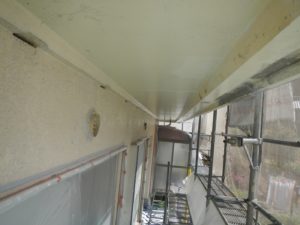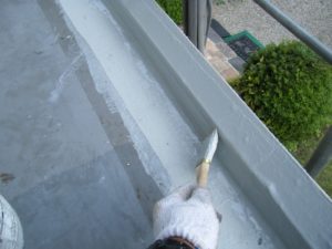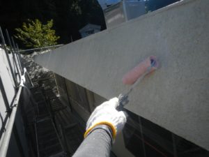 塗膜のひび割れや、壁のひび割れなどを目埋めするために中塗り剤を塗ります。