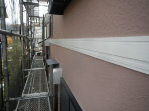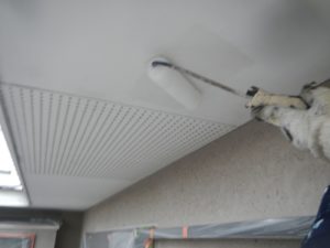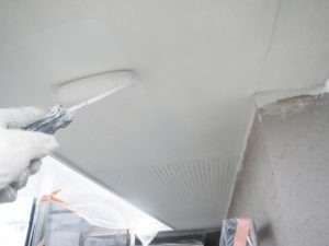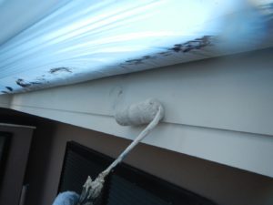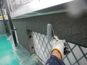 塗膜のひび割れや、壁のひび割れなどを目埋めするために中塗り剤を塗ります。