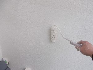 塗膜のひび割れや、壁のひび割れなどを目埋めするために中塗り剤を塗ります。