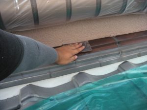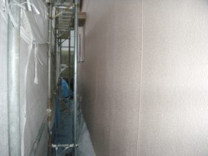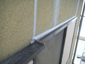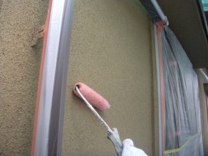 塗膜のひび割れや、壁のひび割れなどを目埋めするために中塗り剤を塗ります。