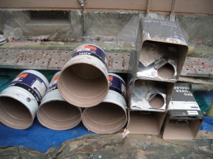 鉄鋼がさびると資材の腐食が促進するため、錆止め剤を塗ります。