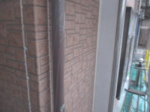 外壁材を保護し、上に塗る塗料の密着を良くするため、下塗り剤を塗ります。