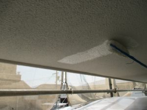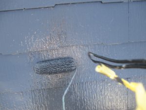 屋根材を保護し、上に塗る塗料の密着を良くするため、下塗り剤を塗ります。