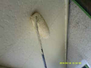 屋根材を保護し、上に塗る塗料の密着を良くするため、下塗り剤を塗ります。