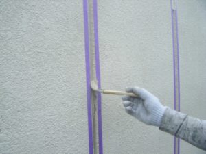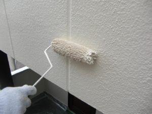塗膜のひび割れや、壁のひび割れなどを目埋めするために中塗り剤を塗ります。