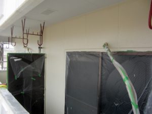 資材を保護し、上に塗る塗料の密着を良くするため、下塗り剤を塗ります。