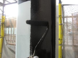 鉄鋼がさびると資材の腐食が促進するため、錆止め剤を塗ります。
