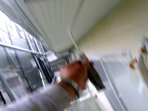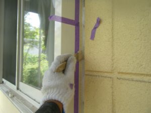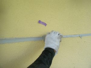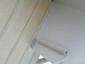 塗膜のひび割れや、壁のひび割れなどを目埋めするために中塗り剤を塗ります。