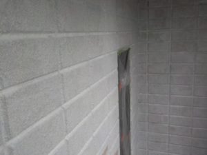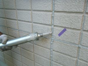 塗膜のひび割れや、壁のひび割れなどを目埋めするために中塗り剤を塗ります。