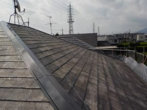 屋根材を自然環境から守るため、上塗り剤を塗り保護します。<