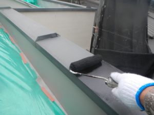 鉄鋼がさびると資材の腐食が促進するため、錆止め剤を塗ります。