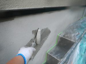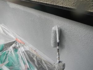 塗膜のひび割れや、壁のひび割れなどを目埋めするために中塗り剤を塗ります。