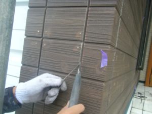気密性や防水性を高めるため、建物のひび割れなどの隙間を充填します。