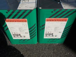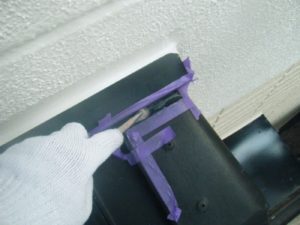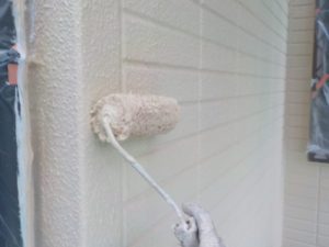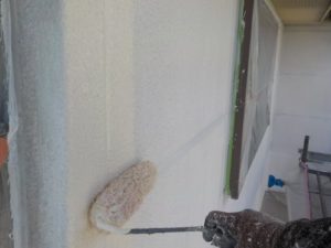 塗膜のひび割れや、壁のひび割れなどを目埋めするために中塗り剤を塗ります。