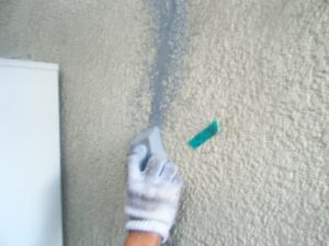 塗膜のひび割れや、壁のひび割れなどを目埋めするために中塗り剤を塗ります。