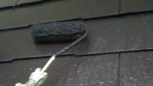屋根材を保護し、上に塗る塗料の密着を良くするため、下塗り剤を塗ります。
