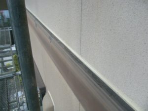 外壁材を保護し、上に塗る塗料の密着を良くするため、下塗り剤を塗ります。