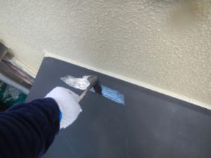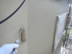 塗膜のひび割れや、壁のひび割れなどを目埋めするために中塗り剤を塗ります。