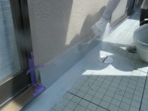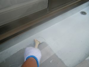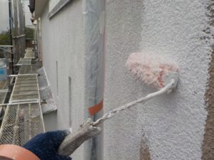 塗膜のひび割れや、壁のひび割れなどを目埋めするために中塗り剤を塗ります。