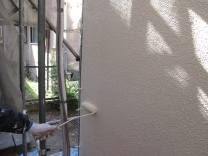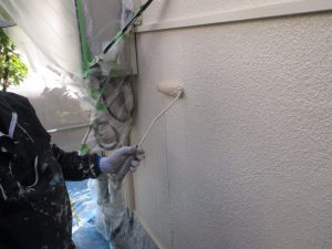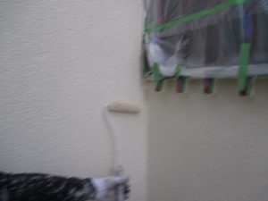 塗膜のひび割れや、壁のひび割れなどを目埋めするために中塗り剤を塗ります。