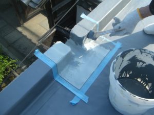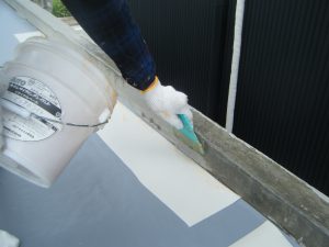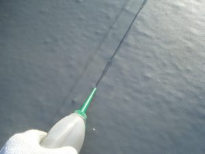塗膜のひび割れや、壁のひび割れなどを目埋めするために中塗り剤を塗ります。