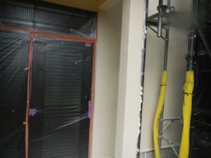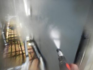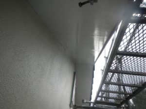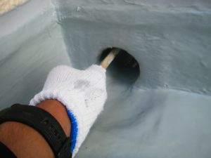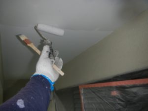 塗膜のひび割れや、壁のひび割れなどを目埋めするために中塗り剤を塗ります。