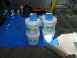 資材を保護し、上に塗る材料の密着を良くするために塗ります。