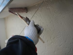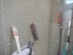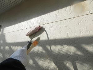 塗膜のひび割れや、壁のひび割れなどを目埋めするために中塗り剤を塗ります。