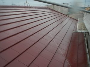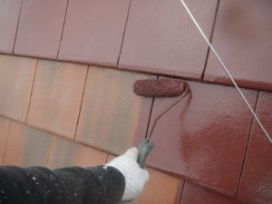 屋根材を自然環境から守るため、上塗り剤を塗り保護します。