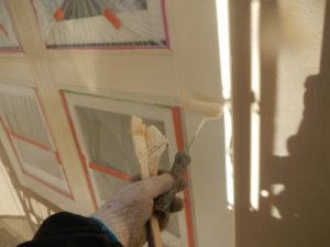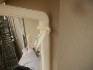 塗膜のひび割れや、壁のひび割れなどを目埋めするために中塗り剤を塗ります。