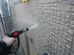 ※塗膜を綺麗で長持ちさせるため、汚れ・埃・苔・藻等を水の高い圧力で洗浄します。