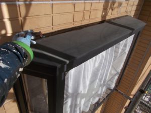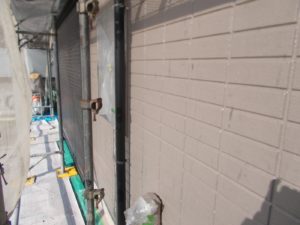 外壁材を保護し、上に塗る塗料の密着を良くするため、下塗り剤を塗ります。
