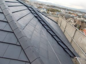 屋根材を自然環境から守るため、上塗り剤を塗り保護します。