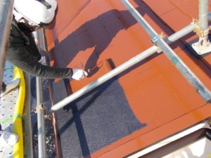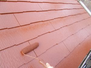 屋根材を自然環境から守るため、上塗り剤を塗り保護します。