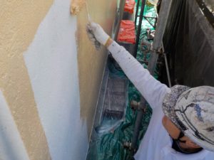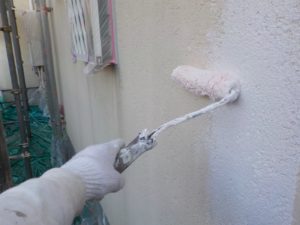 塗膜のひび割れや、壁のひび割れなどを目埋めするために中塗り剤を塗ります。